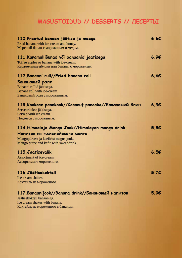 Menu haapsalu